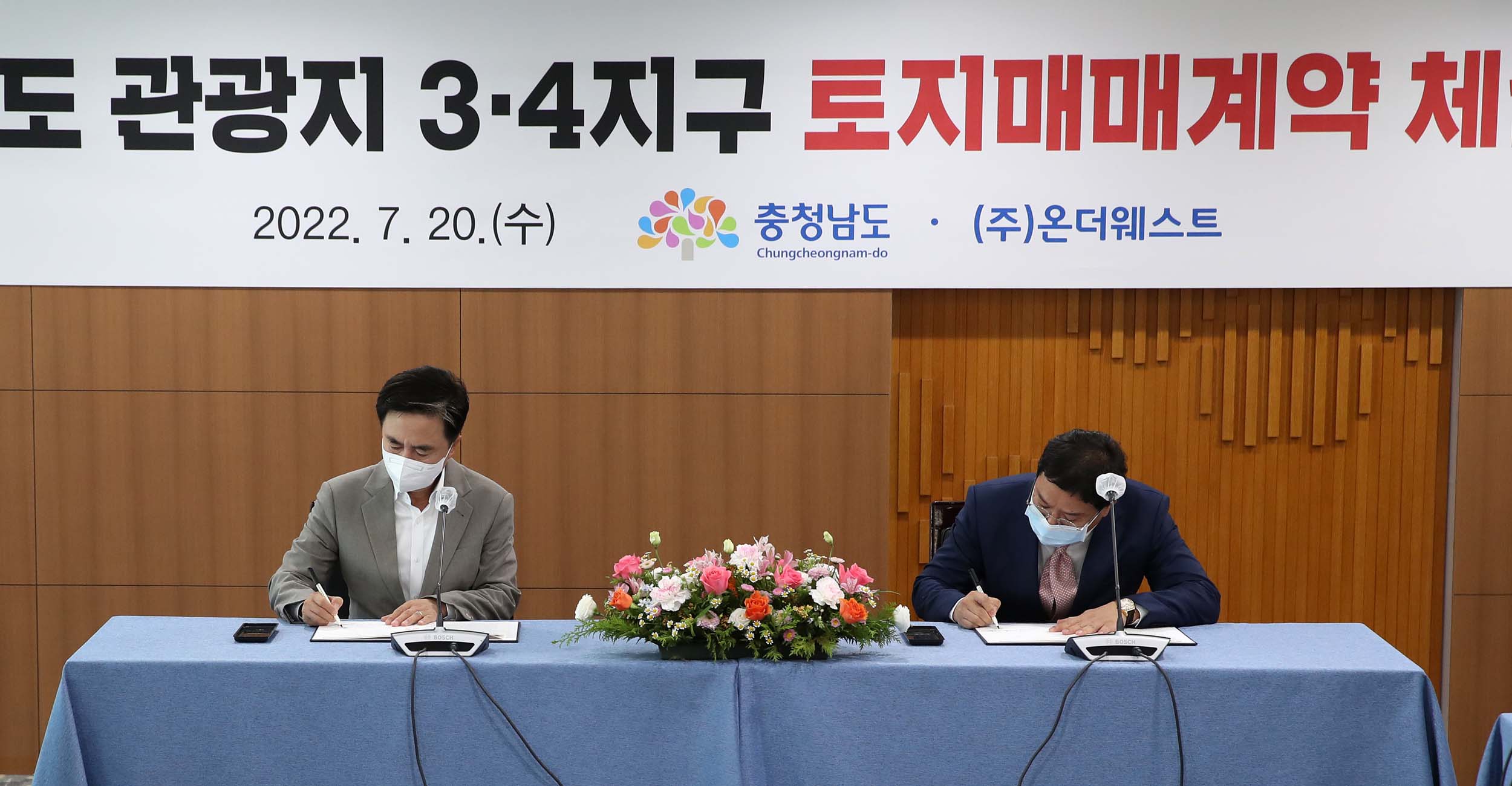 김태흠 지사는 20일 도청 상황실에서 서정훈 온더웨스트 대표이사와 안면도 관광지 조성사업 3‧4지구 토지 매매계약을 체결했다.