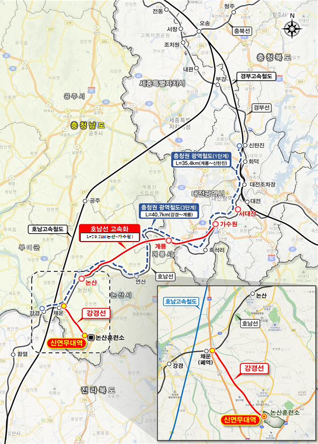 기존 선로 45㎞를 개량해 29.2㎞로 줄이고, 논산훈련소 인근 신연무대역 KTX 운행도 사업 범위에 포함했다.