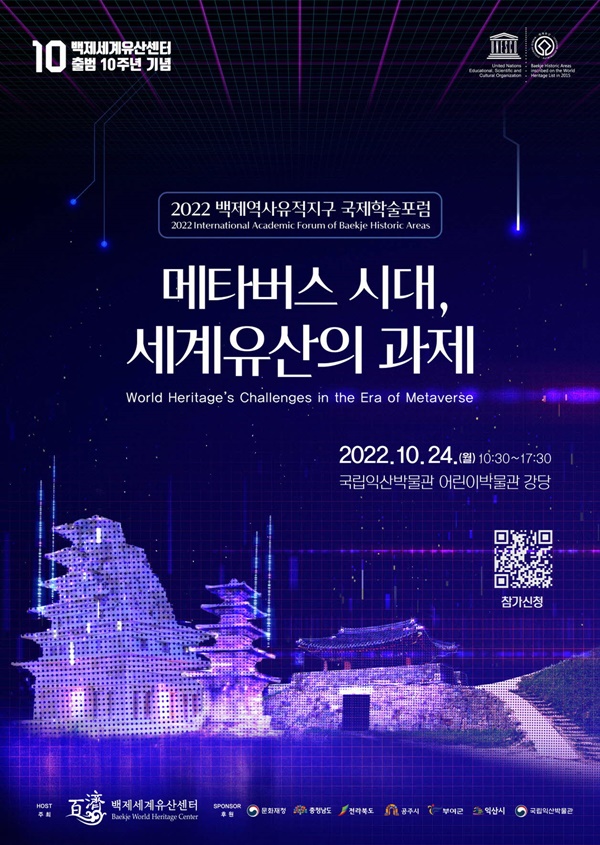 재단법인 백제세계유산센터는 오는 24일 재단 출범 10주년을 맞아 ‘2022 백제역사유적지구 국제학술포럼’을 익산시에서 개최한다.