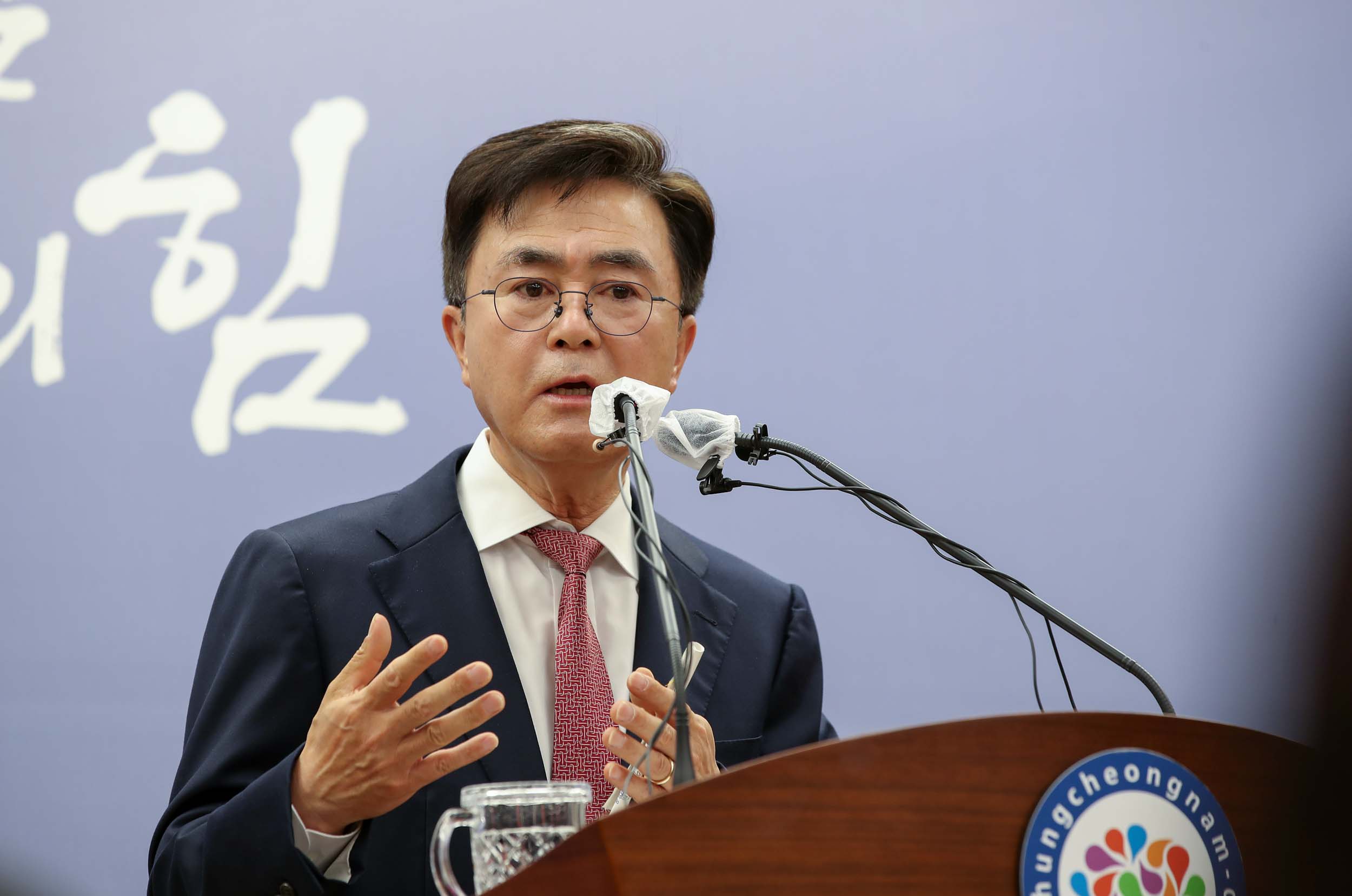 김태흠 지사는 5일 도청 프레스센터에서 기자회견을 열고, 산불 피해지 특별재난지역 선포와 지난 4일 삼성디스플레이 아산캠퍼스에서 열린 ‘삼성디스플레이 신규투자 협약식’ 관련 성과 등을 설명했다.