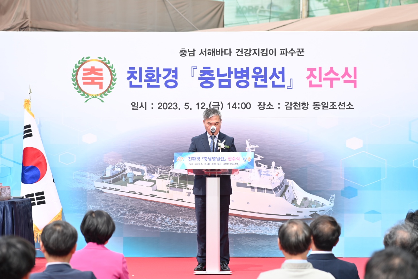 조 국장은 “오늘은 1년 6개월의 건조 과정을 거쳐 충남 병원선이 처음 바다에 띄워지는 매우 기쁘고 뜻깊은 날”이라며 “최첨단 친환경 선박 기술과 최신 의료 장비를 탑재한 320톤급 선박으로 규모와 기능을 한층 강화한 만큼 빠르게 진행되는 서해 도서주민의 고령화로 인한 의료 수요 증가에 찾아가는 의료서비스로 선제 대응할 것”이라고 말했다.