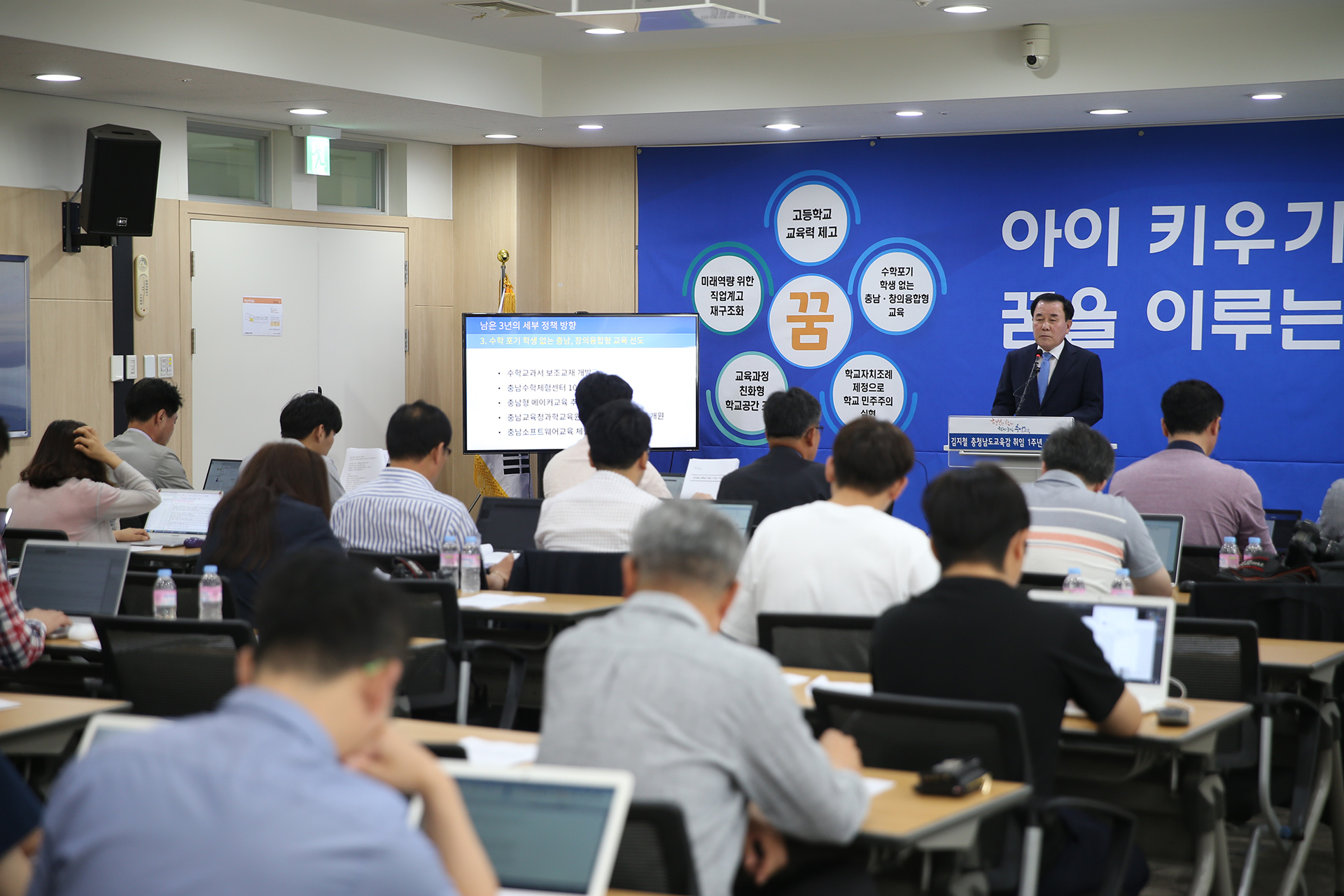 김 교육감은 향후 3년간 충남교육 운영방안도 밝혔다. 김 교육감이 밝힌 주요내용은 일반계 고등학교 교육력 제고와 직업계 고등학교 재구조화, 창의융합 교육 선도, 교과과정 친화경 학교 공간 만들기, 학교자치조례 제정 등이다.