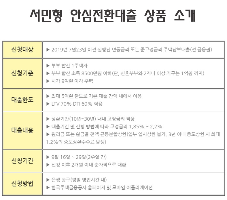 이에 모기지맵 주택(아파트)담보대출 금리비교 사이트에서 안심전환대출 자격 조건 관련 핵심 내용을 소개한다.