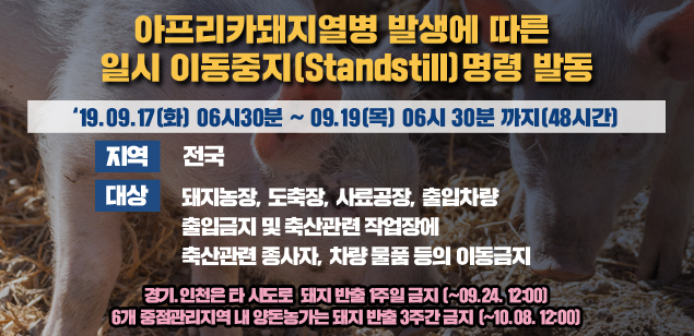 우려했던 상황 그대로 경기도 연천군 소재 돼지농장(사육 규모 4700두)이 18일 오전 7시경 아프리카돼지열병(이하 ‘ASF’)으로 확진 판정을 받았다