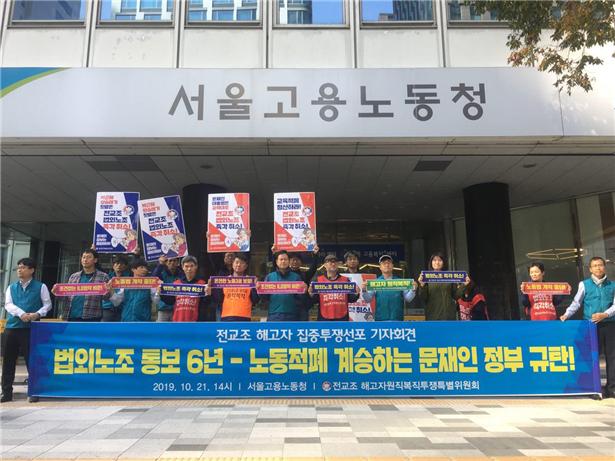 특히 지난 21일부터 해직자들이 서울고용노동청에서 고용장관 면담 요구하는 점거농성을 벌이며 정부의 결단을 강력하게 요구하고 있으며, 농성에 참여한 충남지역 해직자는 2014년부터 2018년까지 충남지부장과 사무처장을 맡은 김종선, 김종현 씨다.