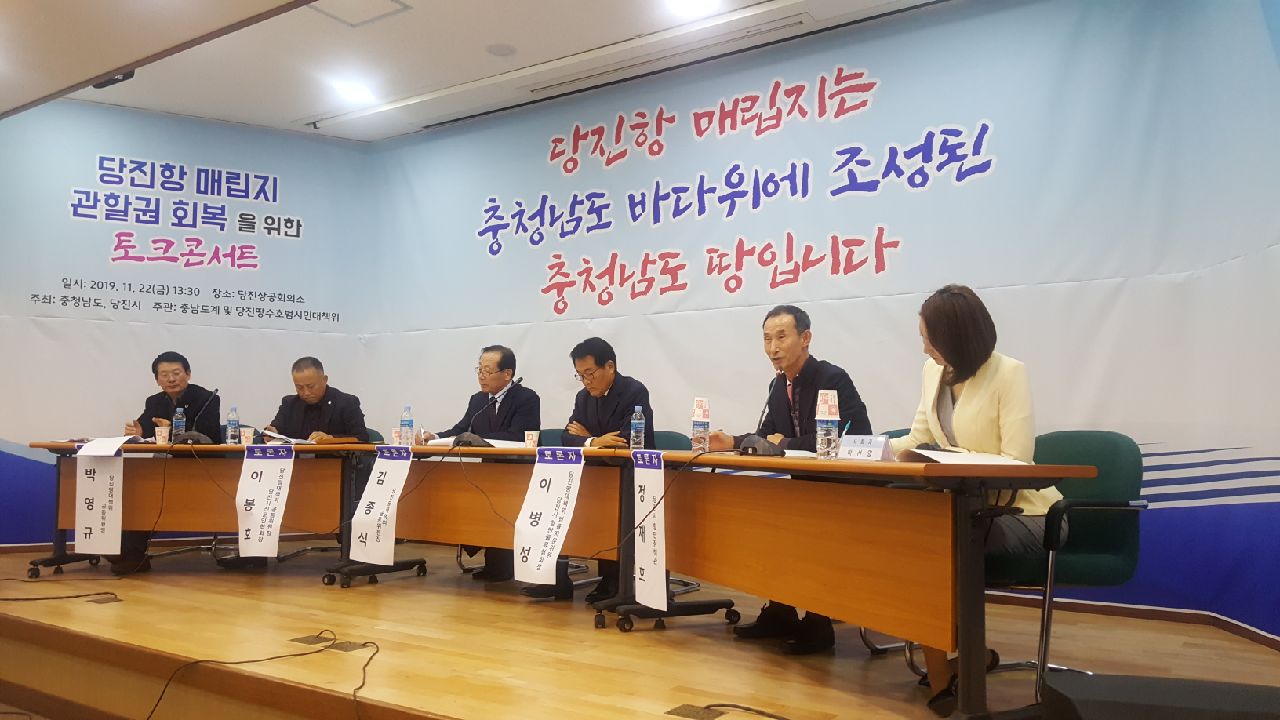 당진항 매립지 관할권 결정을 앞두고, 22일 당진상공회의소에서 ‘당진항 매립지 관활권 회복을 위한 토크콘서트’가 개최됐다.