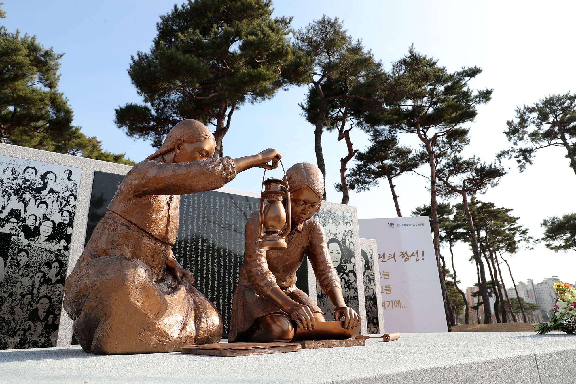 배경으로 설치한 화강석 기둥에는 항일 여자독립선언문 전문과 공식 서훈을 받은 여성 독립운동가 472분의 이름을 새겼다.