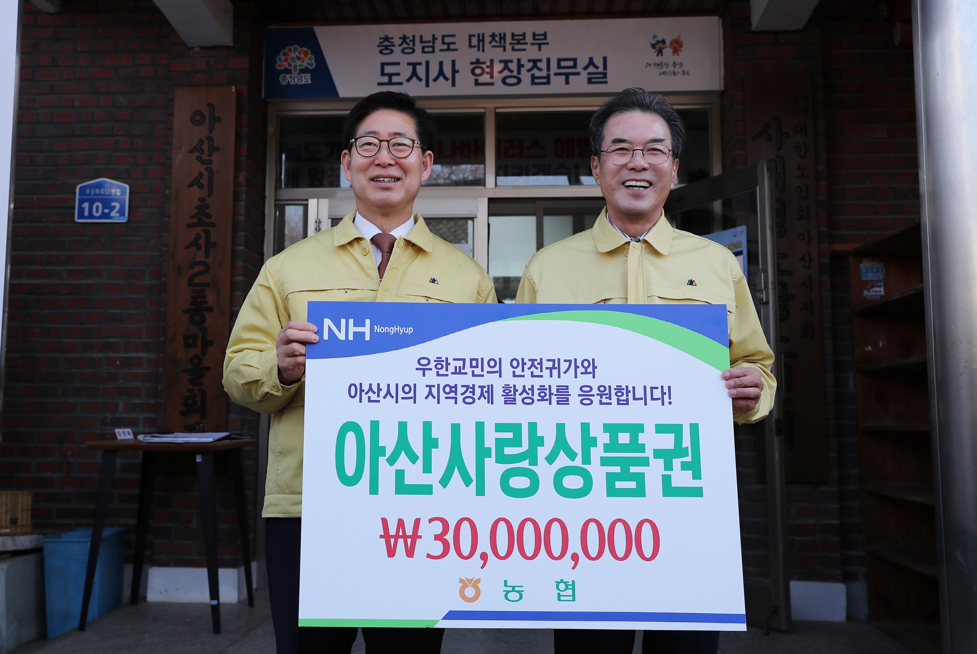 지난 1일 아산 지역 기업체가 2000만 원 상당의 마스크와 손 소독제를 보낸 것을 시작으로, 같은 날 중앙고 아산총동문회, 2일 아산시개인택시지부와 농협은행 아산시지부 등이 후원물품을 전달했다.