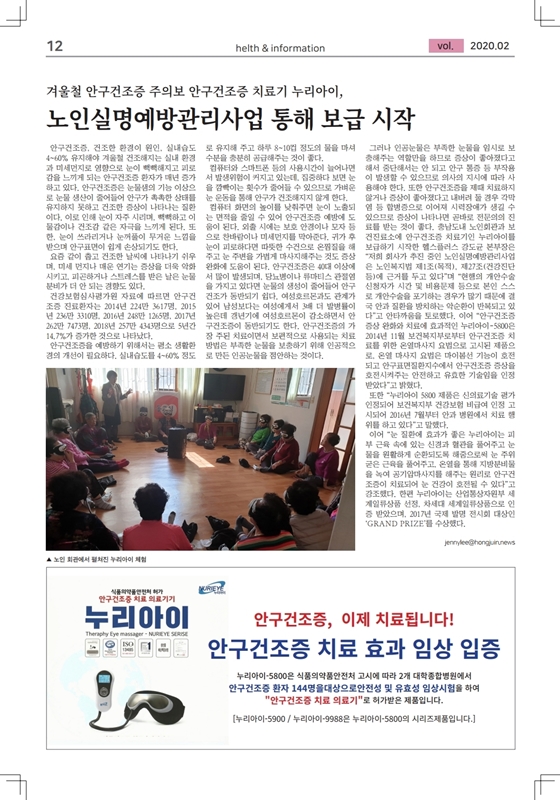 안구건조증 치료기 누리아이, 노인실명예방관리사업 통해 보급 시작