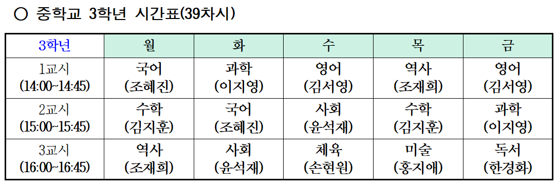 □ 학교급, 학년별 온라인 생방송 운영시간표