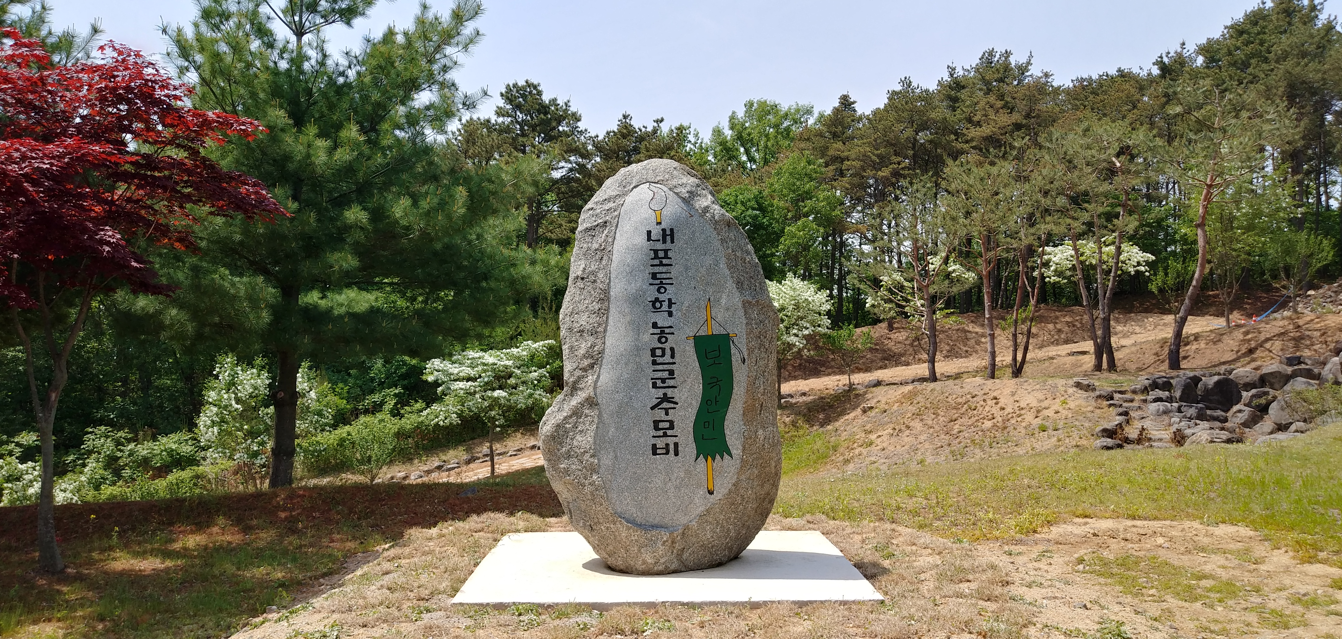 지난해부터 조성되기 시작한 예산읍 관작리 동학공원 내 관작리 전적지 기념석에 새겨진 글귀이다.