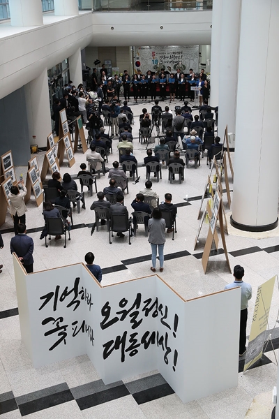 덕산고 강성호 학생과 예산여고 이효주 학생이 5.18 민주화운동의 기본 정신인 ‘나눔과 자치, 연대’를 바탕으로 한 충남 미래선언을 통해 민주주의와 인권, 통일에 대한 의지를 밝혔다. 5.18 관련 메시지가 담긴 소원지를 도청 이전 상징 수목인 배롱나무에 걸고, 태극기·한반도기를 흔들며 ‘우리의 소원’을 제창하는 등 5.18 정신 계승과 통일을 기원했다.