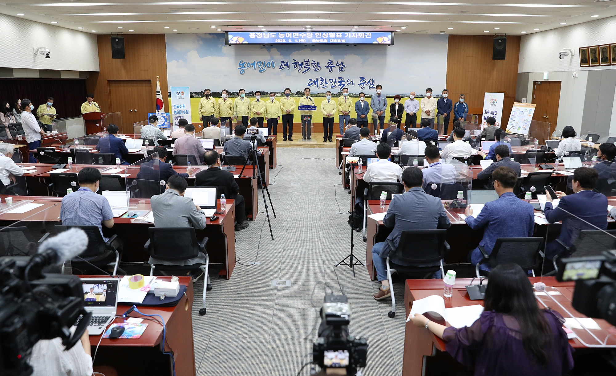 양승조 지사와 황명선 논산시장 등 15개 시·군 시장·군수는 4일 도청 대회의실에서 기자회견을 열고 충남농어민수당을 20만 원 인상해 총 80만 원을 지급키로 했다고 발표했다.