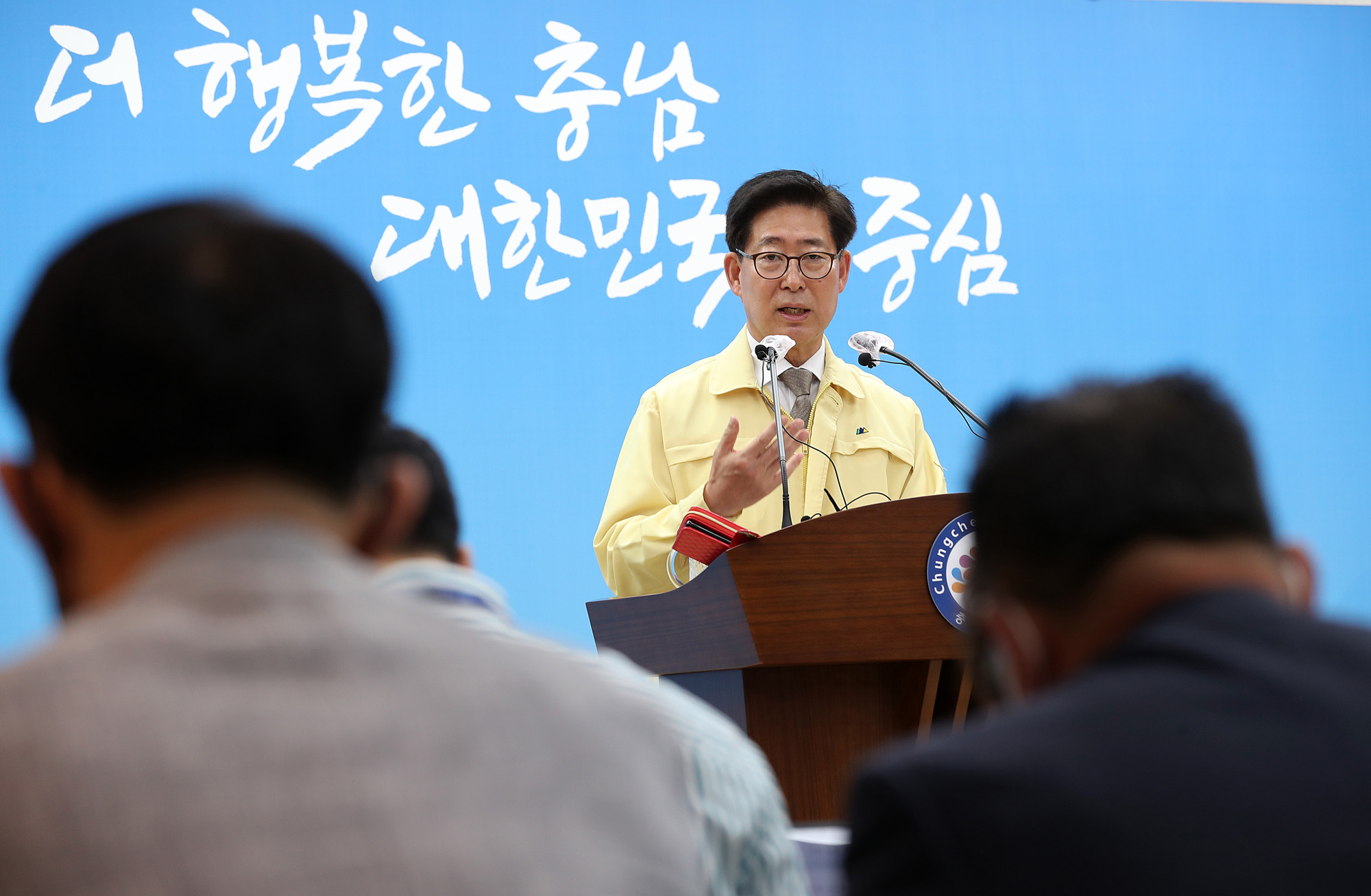 양승조 지사는 9일 도청 프레스센터에서 포스트 코로나19 대응 충남 산업 기반 구축 계획 관련 기자회견을 갖고, “충남 수소에너지전환 규제자유특구와 충남 천안아산 강소연구개발특구 지정을 위해 마지막까지 한 치의 흐트러짐 없이 대응해 나아갈 것이다”고 밝혔다.