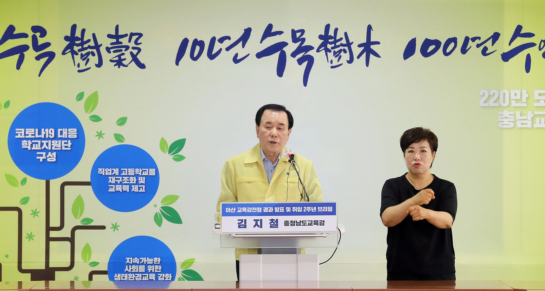 이어 2주년 취임 기자회견을 진행한 김교육감은 지난 2년 동안 추진한 ▲2020 전국 교육감 공약이행 평가 '최고등급(SA)' 달성 ▲유치원부터 고교까지 무상교육 완성, 전국 최초 3대 무상교육 전면 실시 ▲혁신학교 확대와 혁신동행학교 운영 ▲교육청, 시군 지자체, 28개 대학이 업무협약 대학연계형 공동교육과정 운영 ▲5개 권역(천안, 남부, 서산, 내포, 보령) 진학상담센터 운영 ▲소프트웨어교육체험센터 설립, 시군별 상상이룸공작소 구축, 과학교육원 신축 이전 ▲안전한 교육환경 조성을 위한 안전체험관 건립과 ‘학교폭력 예방 어울림 톡’ 개발 ▲학교 민주주의 지수 개발과 교권보호 안전망 구축 ▲학교 내 일제 잔재 청산 작업 ▲코로나19 사태에 전국 최초 ‘어서와! 충남온라인학교’ 운영 등 10대 성과를 강조했다.