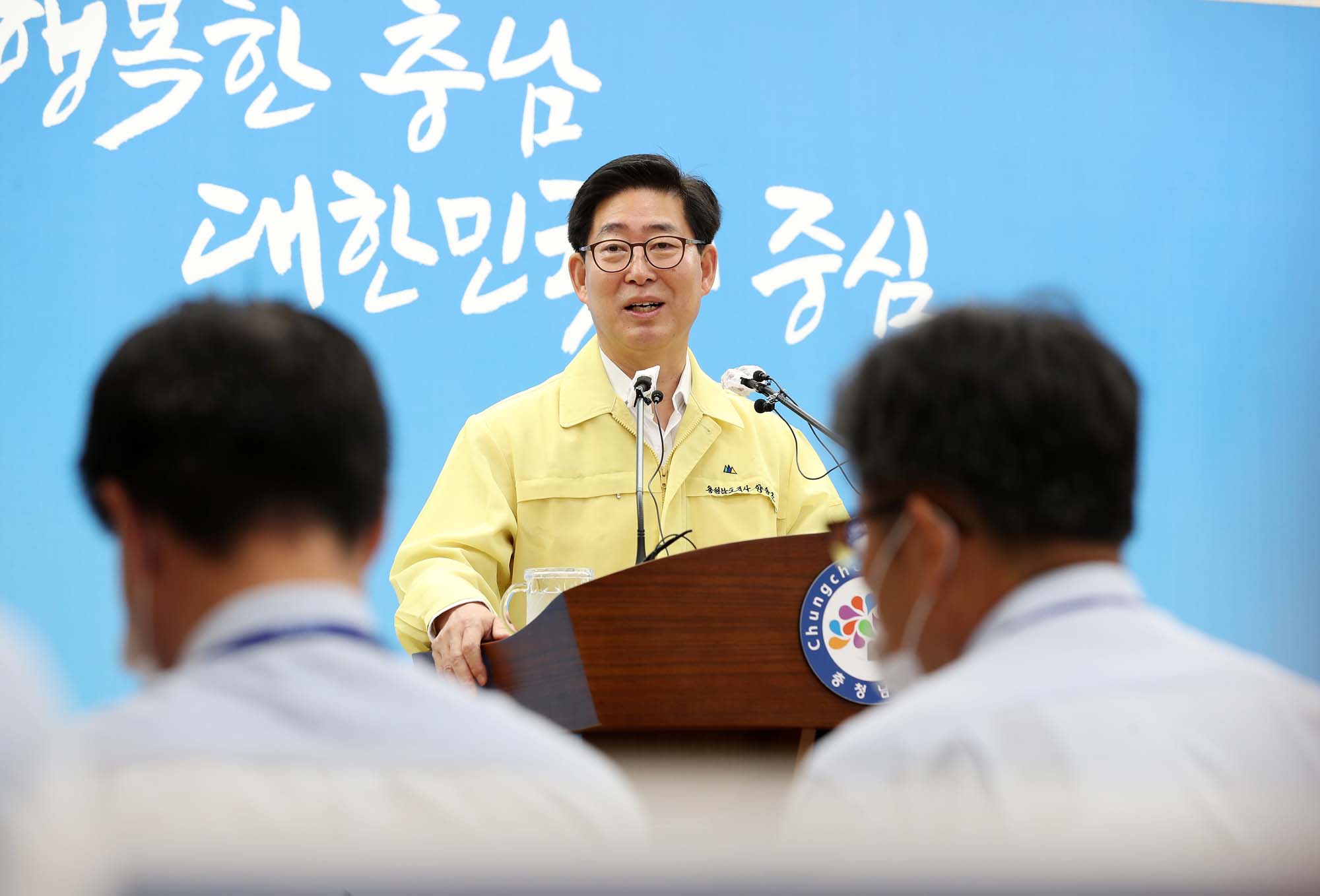 양승조 지사가 22일 도청 프레스센터에서 정례 기자회견을 통해 충남 공공산후조리원 설립 및 지원 계획과 디지털 성폭력 피해 통합 지원을 위한 사이버 지킴이 네트워크 구축 계획을 발표했다.