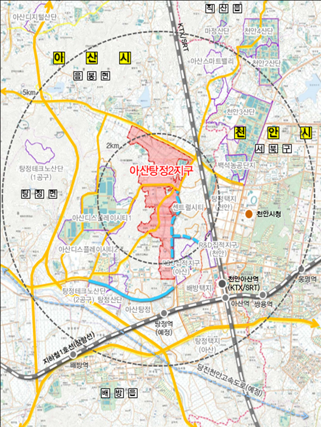 국토교통부는 삼성디스플레이시티 신규투자 발표, KTX역세권 R&D 집적지구 조성사업 등 국가계획과 연계해 공공주도로 신도시를 개발한다는 계획이다.