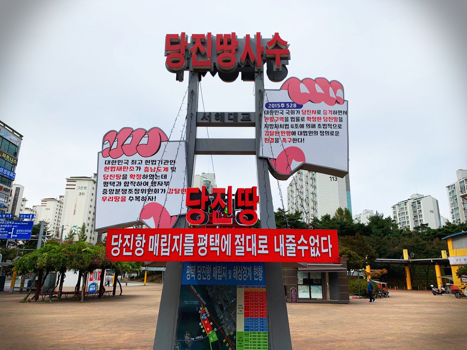 홍주인뉴스]“당진·평택항 매립지 관할권 회복 소송 홍보탑 새 단장”