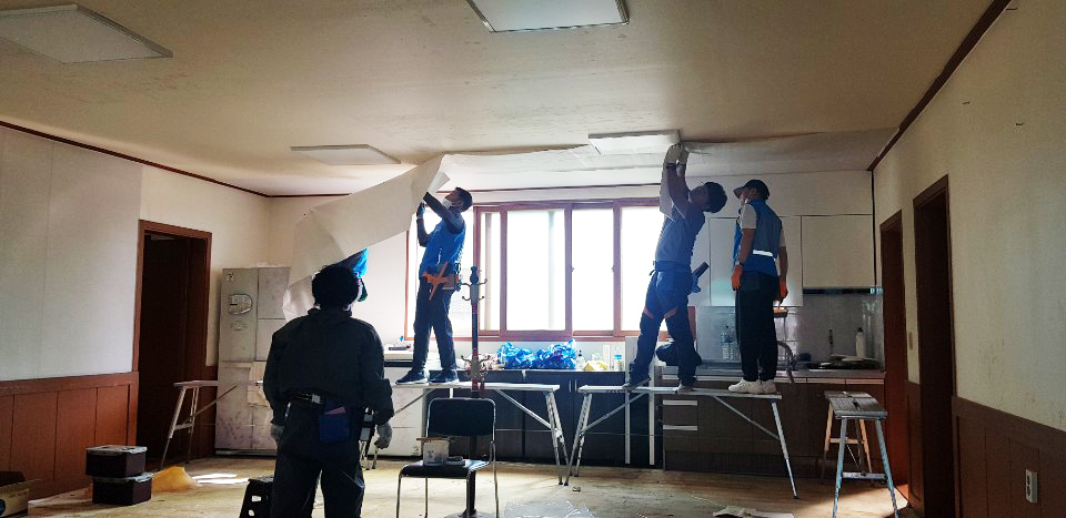 도배 전문 봉사단체인 어울림봉사단(회장 임영수)과 우렁각시봉사단(회장 한도현)의 재능기부 활동과, 신한벽지 중부총판(대표 이창헌)의 벽지 후원 으로 도배 봉사 활동이 이뤄졌다.