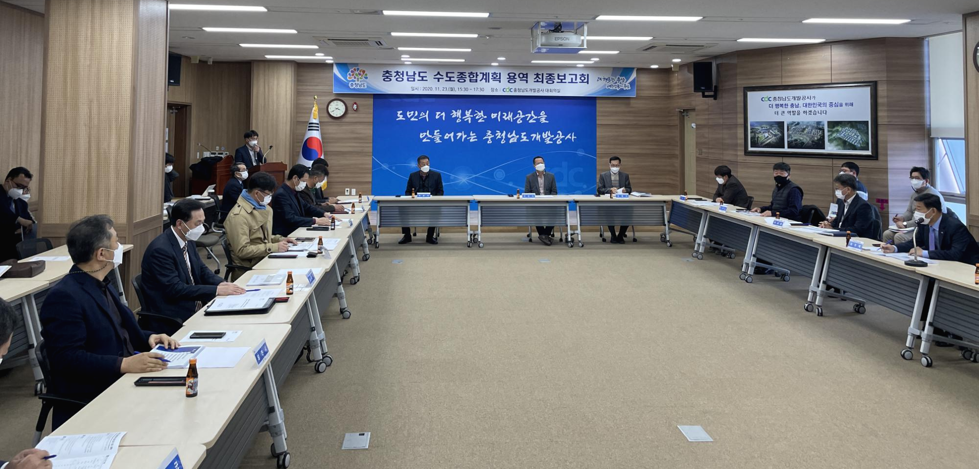 충남도내 수돗물 공급 안정성을 향상하고 합리적인 수도 운영 관리를 위한 충청남도 수도종합계획 수립 용역 최종보고회가 23일 충남개발공사 대회의실에서 열렸다.