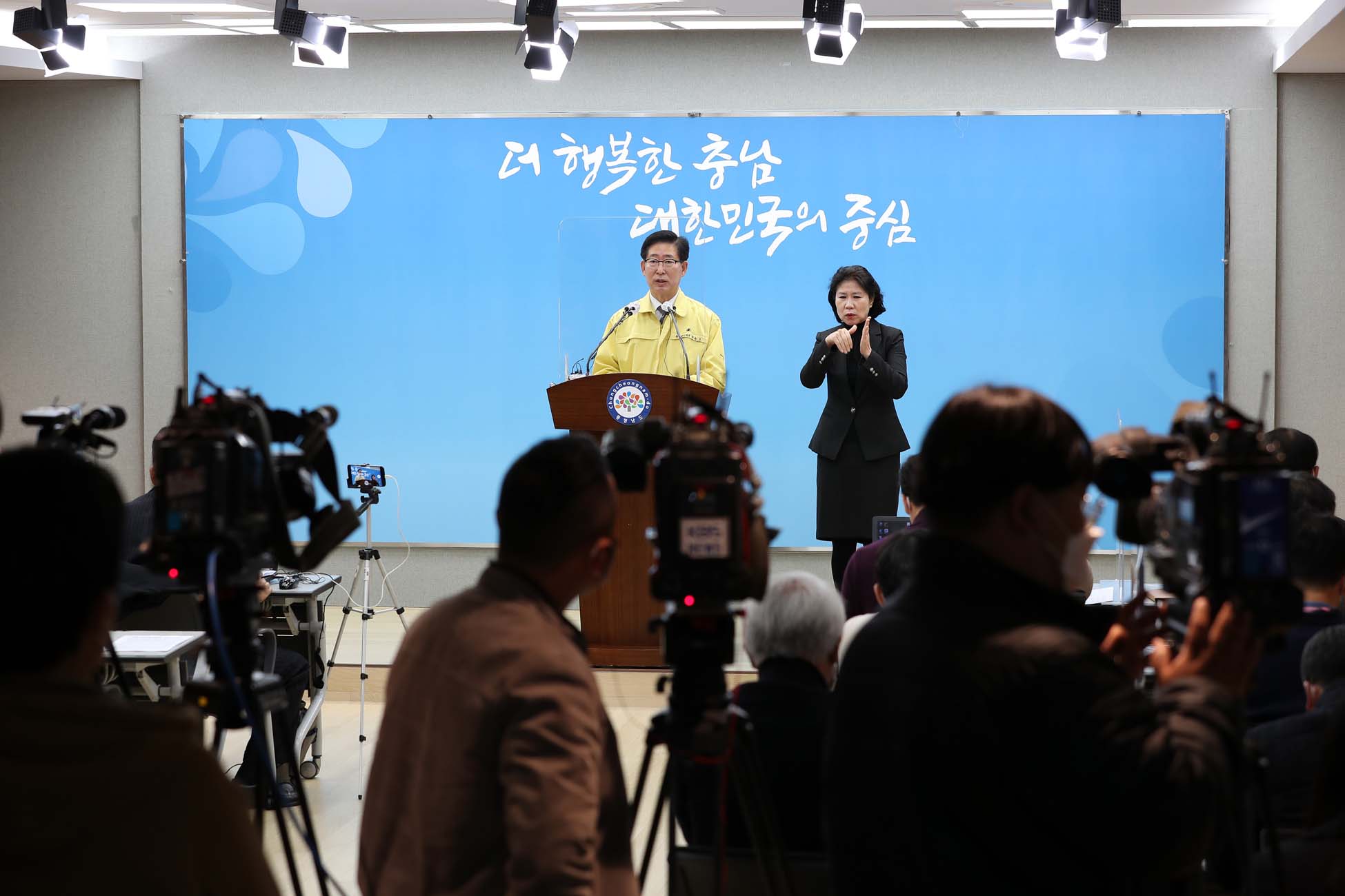 양승조 지사는 25일 도청 프레스센터에서 기자회견을 열고 특별방역조치 시행 및 생활방역 강화 방안을 발표했다. 이번 조치는 수도권 사회적 거리두기 2단계 상향과 도내 요양병원 등에서 집단감염이 잇따라 발생함에 따라 마련했다.