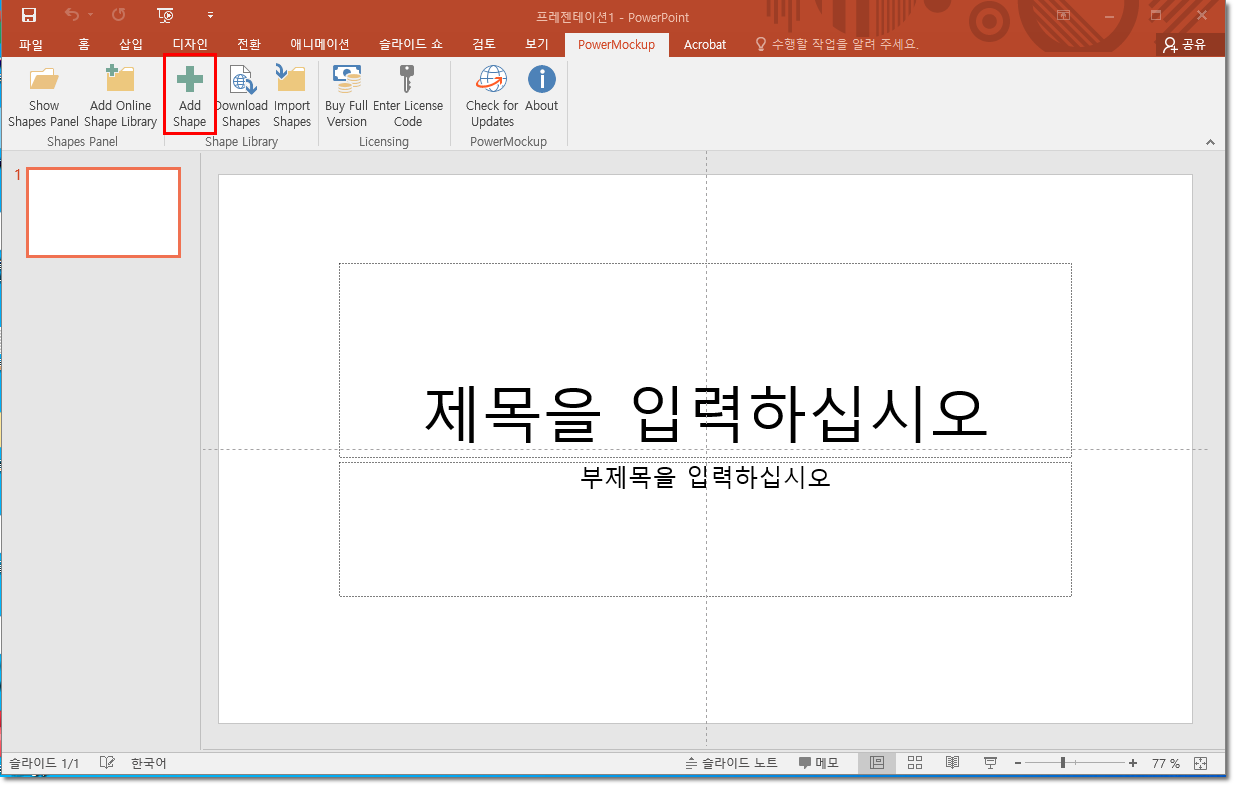 Power Mockup을 클릭하면 아래와 같은 화면으로 전환된다. Add Shape를 클릭한다.