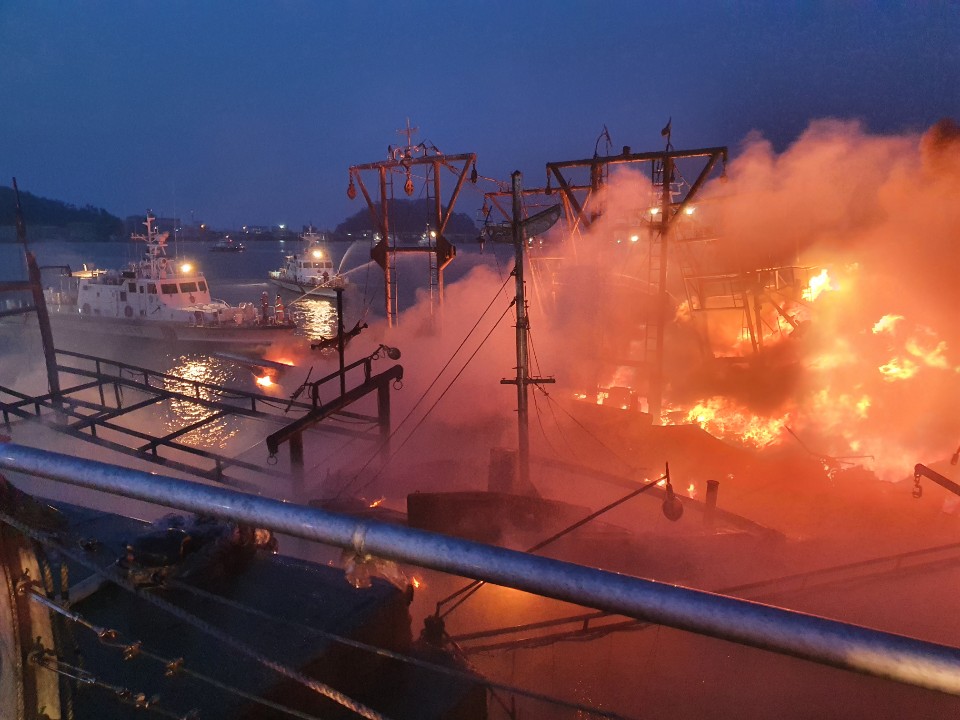한편 화재는 초속 6~8미터의 강한 북서풍을 타고 짧은 시간 정박 중인 배를 전소시켰다. 정박중인 배는 19척으로 추정하고 있다. 전용식 총괄기자 jys@hongjuin.news