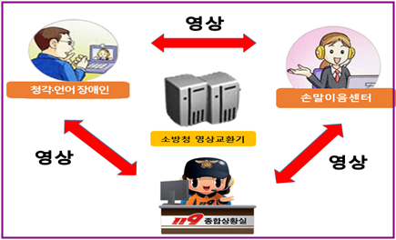 서비스는 청각‧언어 장애인이 119로 신고를 하면 상황요원과 전문 수어 통역사가 동시에 영상통화로 연결된다.