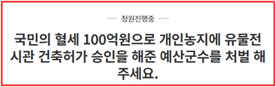 청와대 국민청원, 개인농지에 유물전시관 건축허가 승인을 해준 예산군수를 처벌 해주세요.