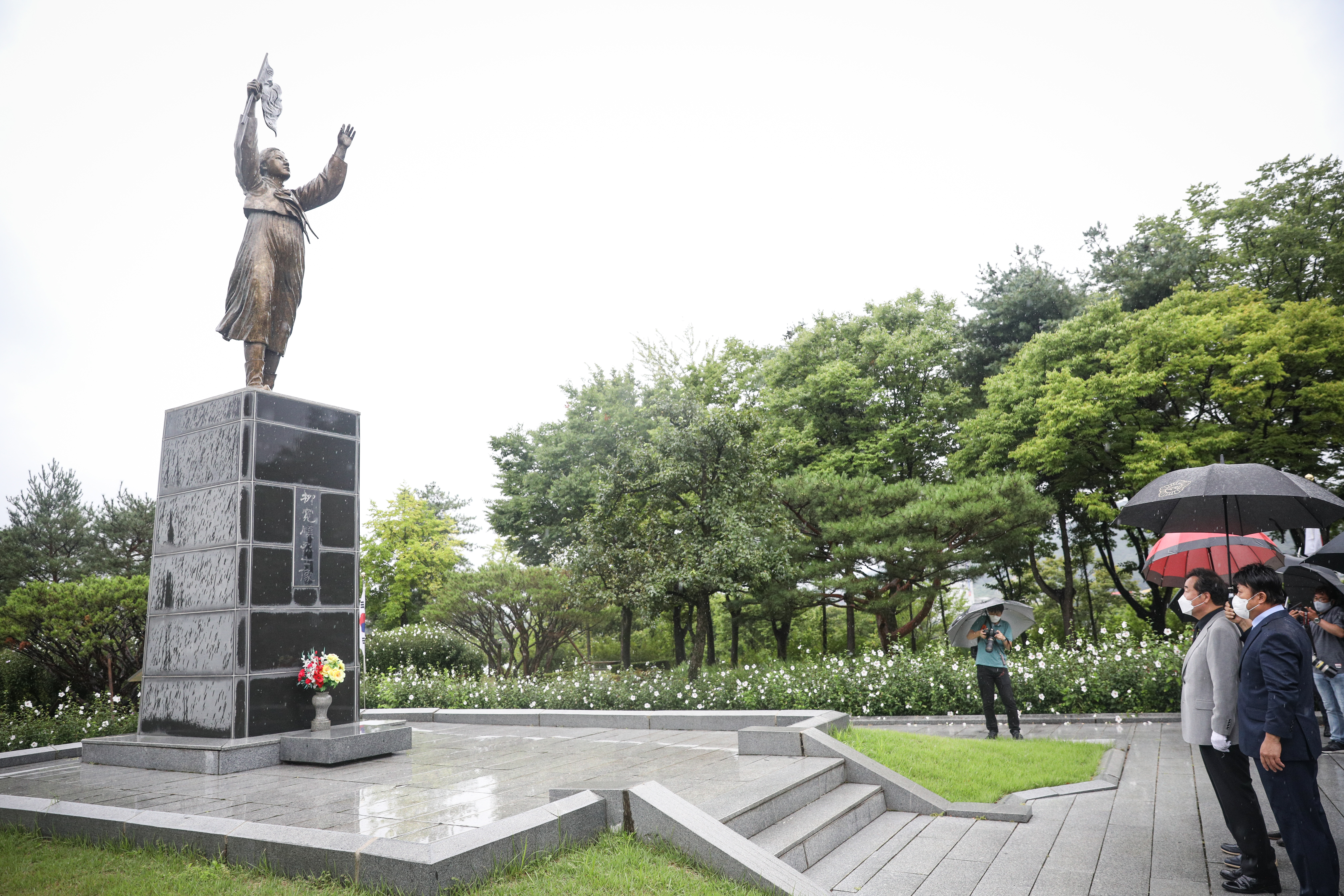 유관순 열사 추모각 앞에서는 충남 돌봄, 문화예술인 1026명의 이낙연 지지선언이 함께 진행되었다.