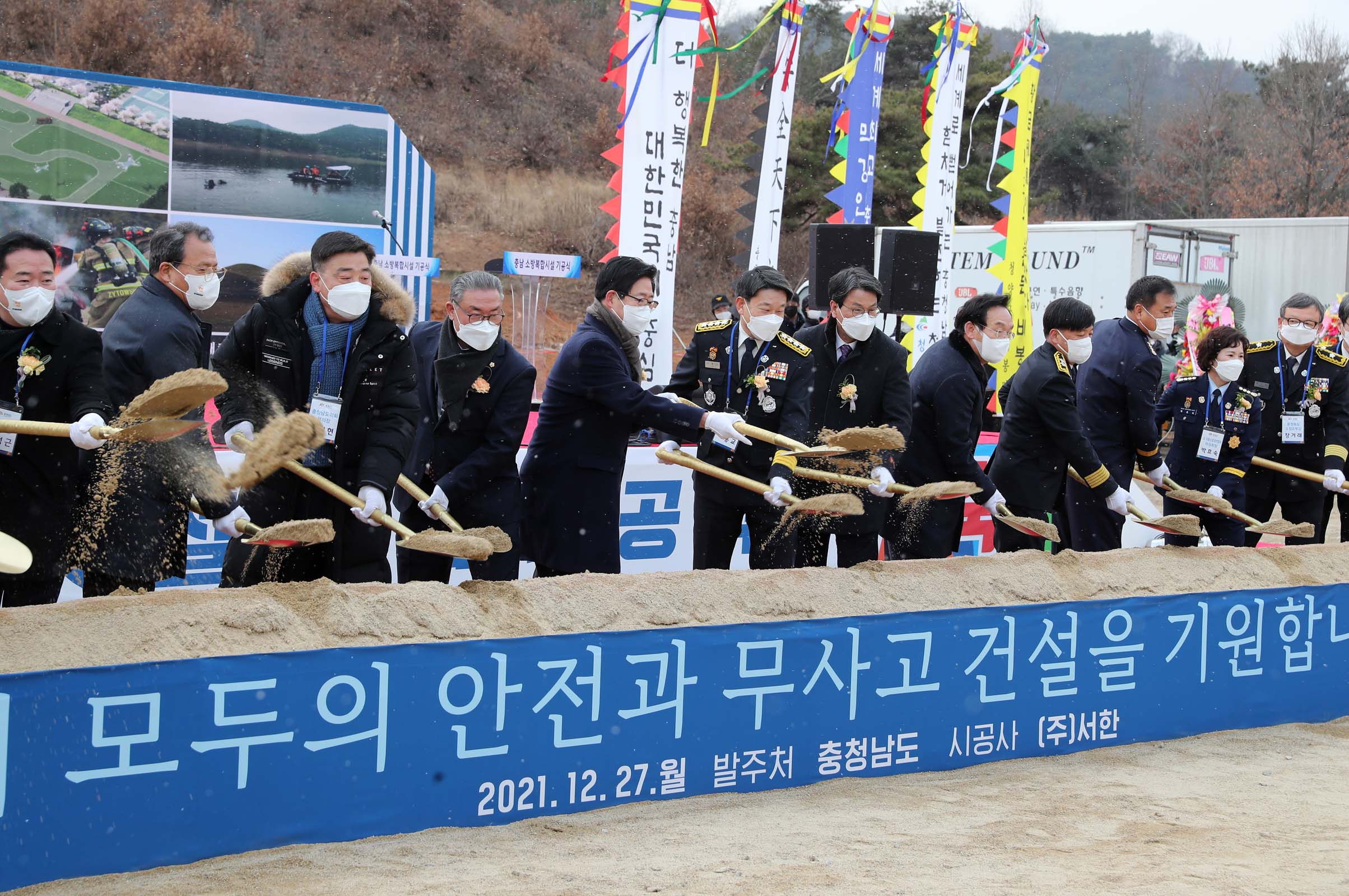 충남도소방본부가 27일 청양군 비봉면에서 충남소방복합시설 기공식을 개최하고 본격 공사에 들어갔다.