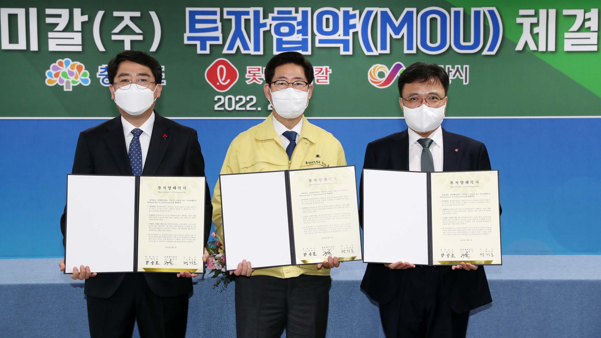 도는 7일 도청 상황실에서 양승조 지사와 맹정호 서산시장, 황진구 롯데케미칼 기초소재사업 대표 등이 참석한 가운데, 롯데케미칼 공장 신·증설에 관한 투자협약(MOU)을 체결했다.