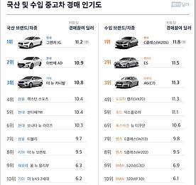 홍주인뉴스=홍주in뉴스] 2018년 중고차 경매 인기도 1위 국산 그랜저IG, 수입 벤츠 C클래스국산차 1위 그랜저, 2위 아반떼, 3위 카니발 순 수입차 1위 벤츠 C클래스, 2위 렉서스 ES, 3위 아우디 A6순 전용식 총괄기자 jys@hongjuin.news 헤이딜러가 중고차 시장의 매입 선호도를 가늠할 수 있는 2018년 중고차 경매 인기도 집계 결과를 11일 발표했다. 2018년 1년간 진행된 온라인 중고차 경매 데이터와 국산 15만451건, 수입 4만6511건을 분석한 결과이다.국산차와 수입차 각 10개 대표 차종의 입찰 인기도에서 국산차는 그랜저가 1위, 아반떼가 2위, 카니발이 3위를 차지했고, 수입차는 벤츠 C클래스가 1위, 렉서스 ES가 2위, 아우디 A6가 3위를 차지했다. 국산차 1..